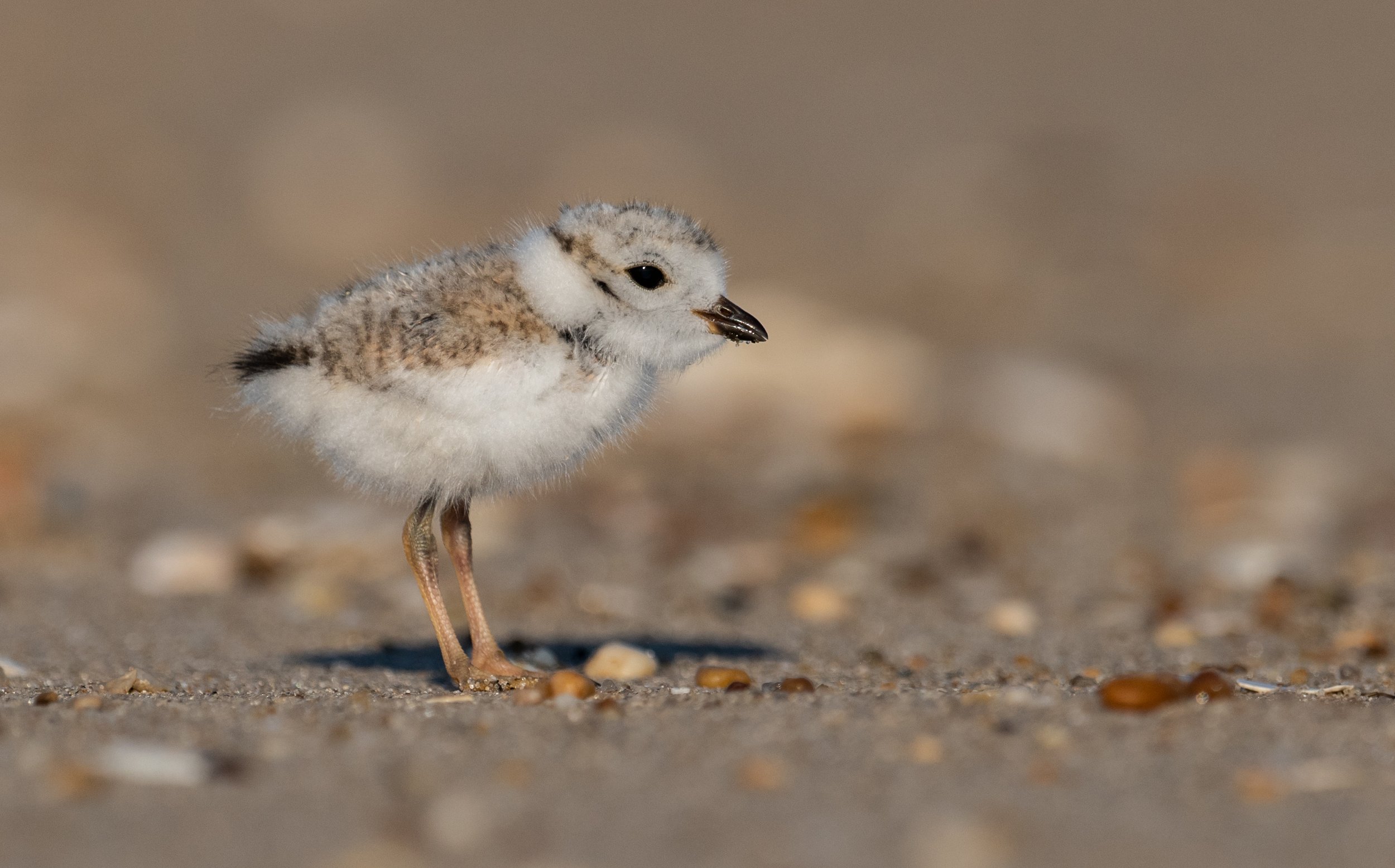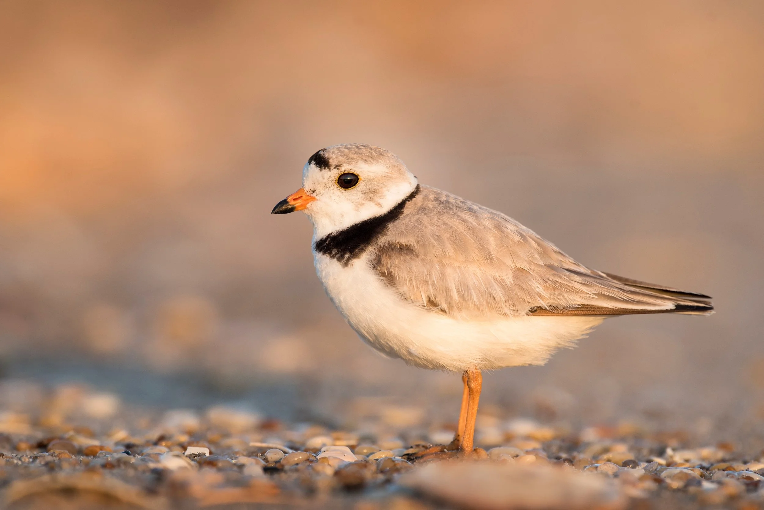 These migrating shorebirds are Piping Plovers! You can see these little guys on the east coasts of north America running up and down with the waves to catch their food in the sand. Be careful on the beaches that are roped off, as they are protected areas for plovers to lay their eggs! Be respectful and keep your distance from this threatened species.