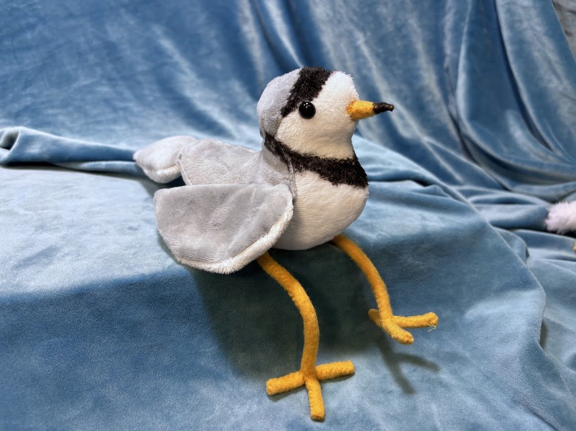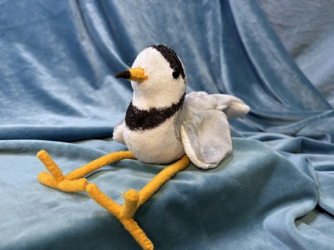 The Adult Plover is made with a layered white and grey fabric, and details created with fabric ink. This specific coloration showcases their summer coat when trying to find a mate!