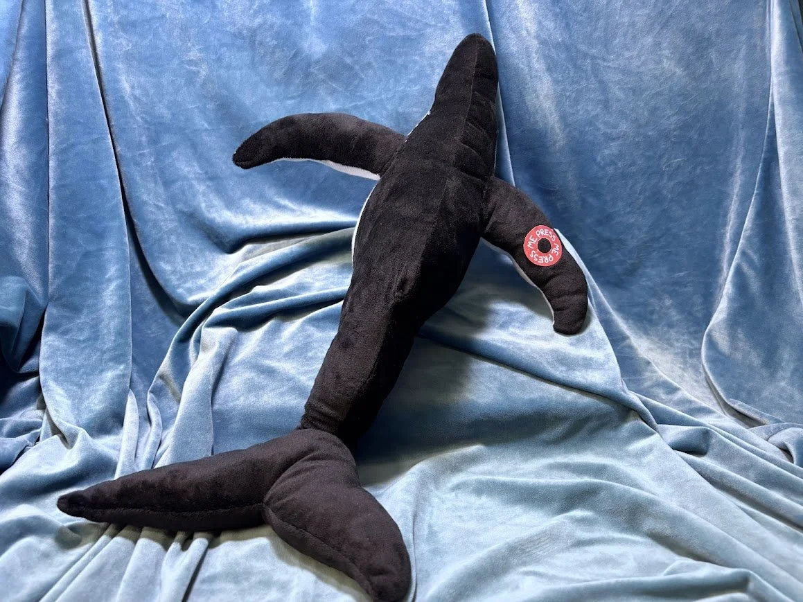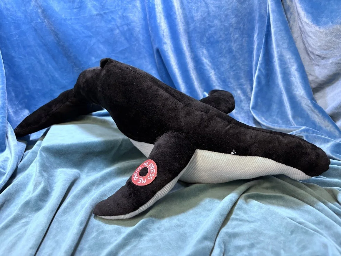 Our Humpback whale plush features their signature noises, press the fin and it'll start making its iconic whale call!
